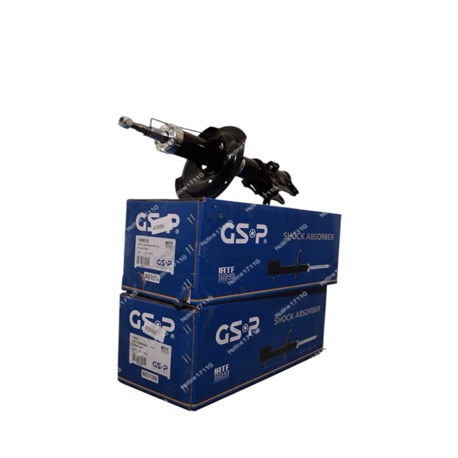 طقم مساعدين أمامي غاز عالي الجودة مصمم لكل من Hyundai New Accent MC و Kia Rio، من تصنيع GSP، المتخصص في إنتاج مكونات أنظمة التعليق والعفشة للسيارات.